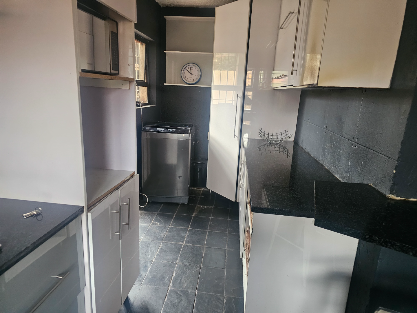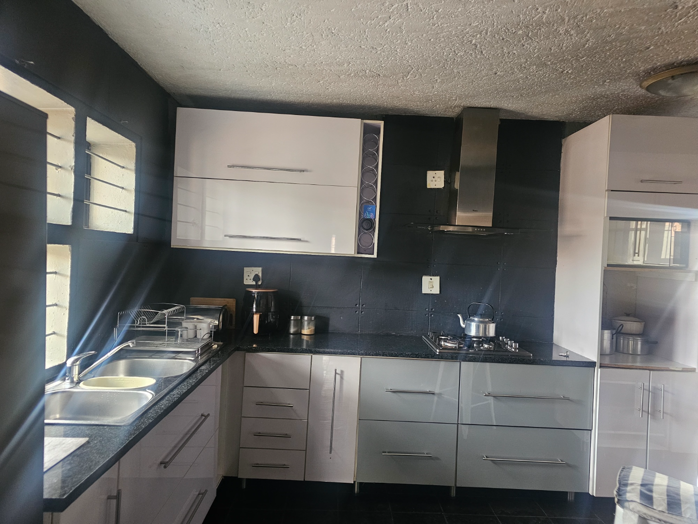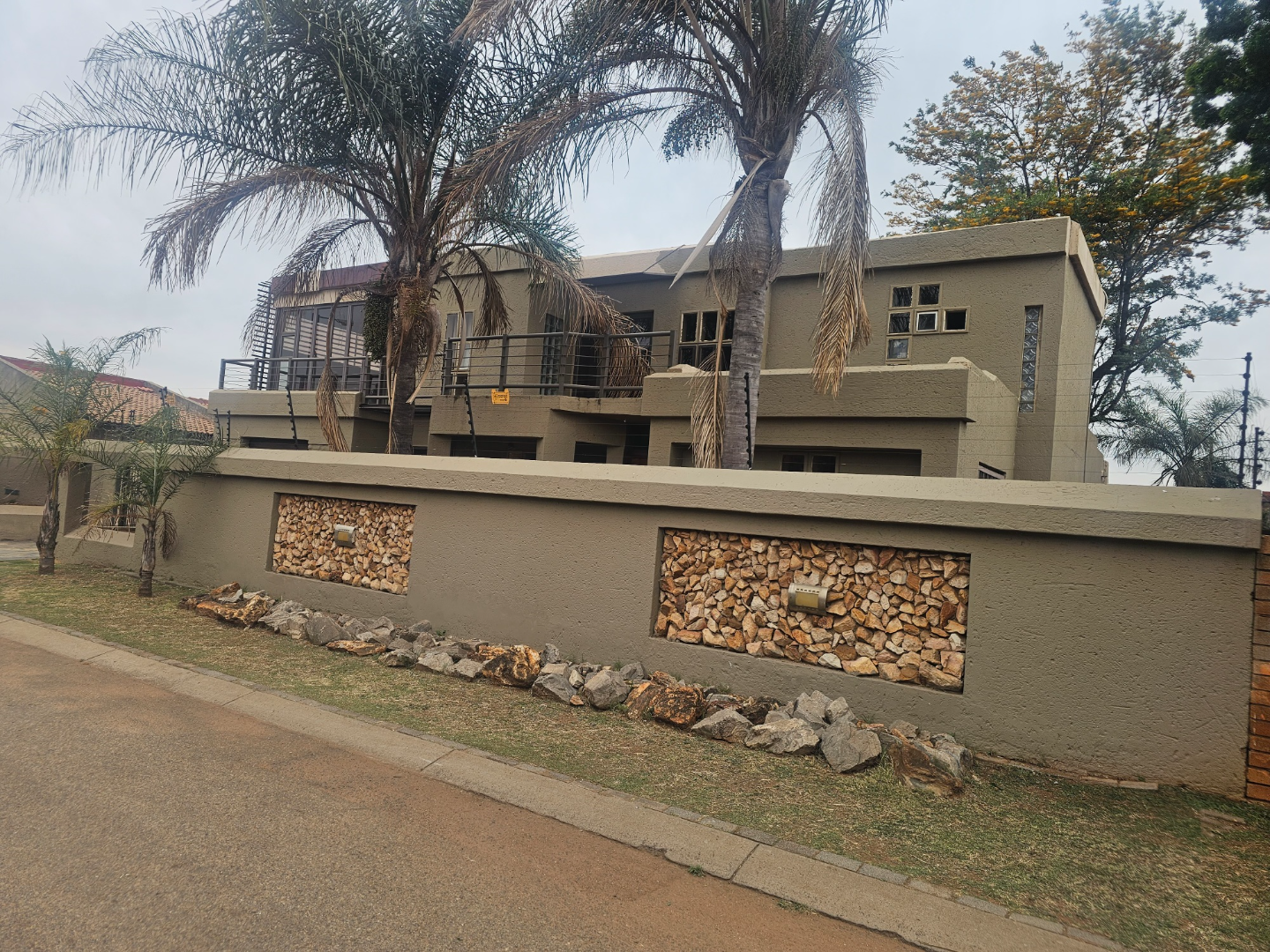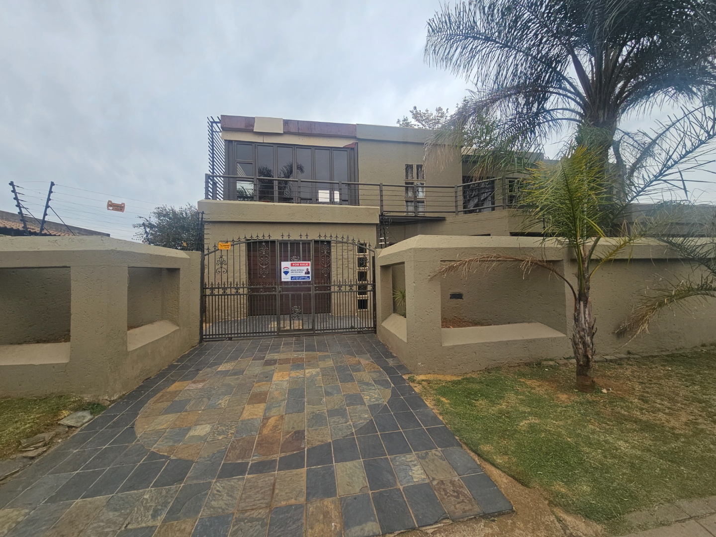 Discover this modern multi-story family home located in the vibrant community of Spruit View, Katlehong, South Africa. The property presents a distinctive architectural design with neutral-toned exteriors and prominent balconies, offering a welcoming first impression. Enhanced security is a key feature, with a high perimeter wall, electric fencing, and a robust, ornate entrance gate, complemented by a patterned stone driveway providing convenient off-street parking. Inside, the residence boasts four comfortable bedrooms and two well-appointed bathrooms, including a private en-suite for added convenience. The living spaces comprise two spacious lounges and a dedicated dining room, providing ample room for relaxation and entertaining. The modern kitchen is equipped with white and grey cabinetry, dark countertops, a gas stovetop, and a double sink, catering to contemporary living needs. Outdoor living is facilitated by a private backyard garden featuring a green lawn and mature plants, alongside a concrete patio area perfect for enjoying the South African climate. A utilitarian garage with a wooden sectional door and tiled flooring offers secure parking for one vehicle, with an additional parking space available. Spruit View offers a dynamic residential environment within Katlehong, providing residents with access to local amenities and a sense of community. This property combines modern living with practical security features, making it an ideal family residence. Key Features: * Modern Multi-Story Home * 4 Bedrooms, 2 Bathrooms (1 En-suite) * 2 Lounges, 1 Dining Room * Modern Kitchen with Gas Hob * Private Garden and Patio Area * Secure Parking: 1 Garage, 1 Parking * Electric Fencing & Access Gate * Paved Driveway