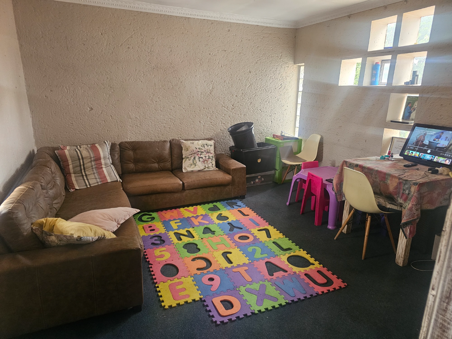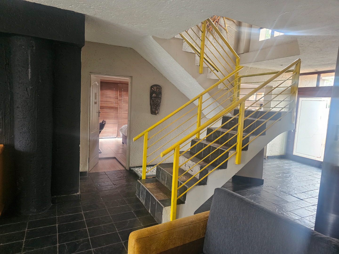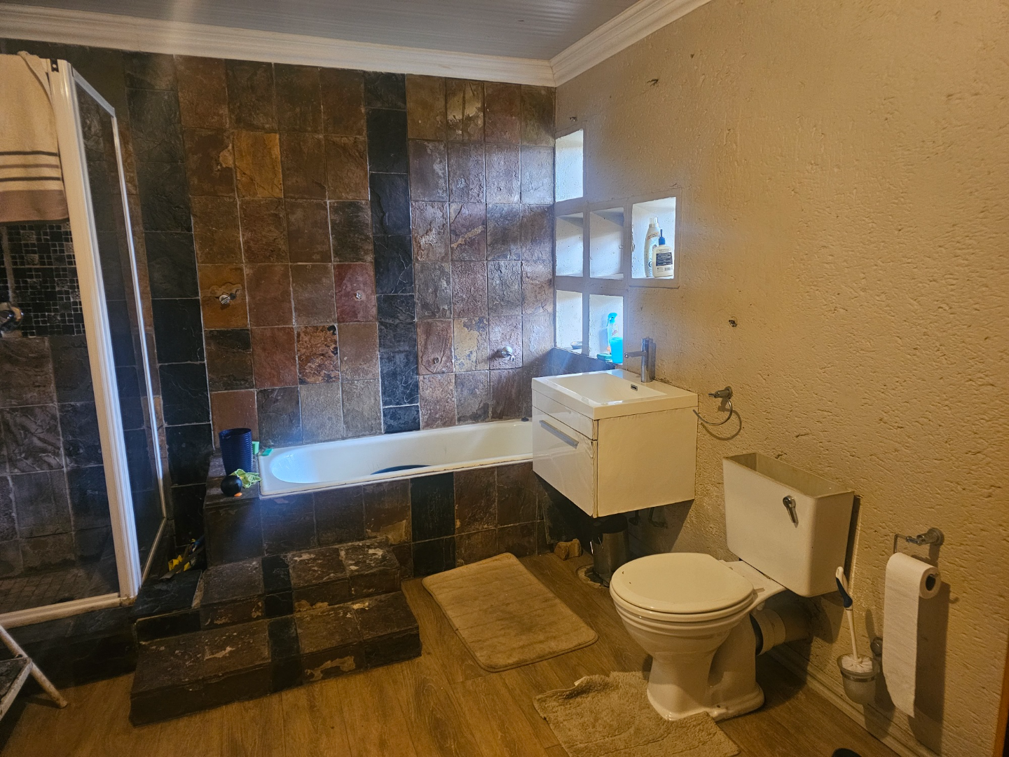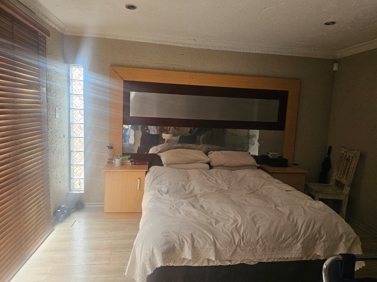 Discover this modern multi-story family home located in the vibrant community of Spruit View, Katlehong, South Africa. The property presents a distinctive architectural design with neutral-toned exteriors and prominent balconies, offering a welcoming first impression. Enhanced security is a key feature, with a high perimeter wall, electric fencing, and a robust, ornate entrance gate, complemented by a patterned stone driveway providing convenient off-street parking. Inside, the residence boasts four comfortable bedrooms and two well-appointed bathrooms, including a private en-suite for added convenience. The living spaces comprise two spacious lounges and a dedicated dining room, providing ample room for relaxation and entertaining. The modern kitchen is equipped with white and grey cabinetry, dark countertops, a gas stovetop, and a double sink, catering to contemporary living needs. Outdoor living is facilitated by a private backyard garden featuring a green lawn and mature plants, alongside a concrete patio area perfect for enjoying the South African climate. A utilitarian garage with a wooden sectional door and tiled flooring offers secure parking for one vehicle, with an additional parking space available. Spruit View offers a dynamic residential environment within Katlehong, providing residents with access to local amenities and a sense of community. This property combines modern living with practical security features, making it an ideal family residence. Key Features: * Modern Multi-Story Home * 4 Bedrooms, 2 Bathrooms (1 En-suite) * 2 Lounges, 1 Dining Room * Modern Kitchen with Gas Hob * Private Garden and Patio Area * Secure Parking: 1 Garage, 1 Parking * Electric Fencing & Access Gate * Paved Driveway