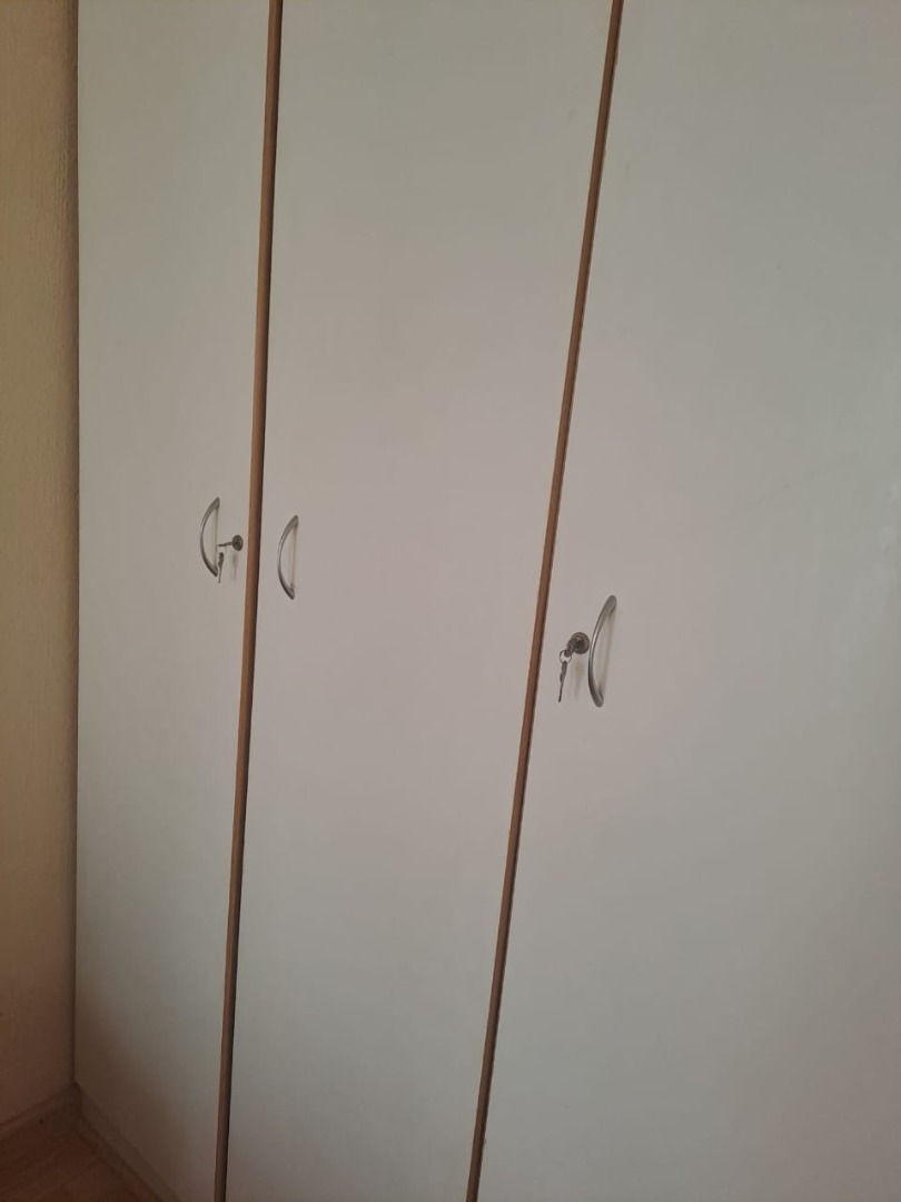 Two well-proportioned bedrooms are designed for comfort. One features a large window with curtains and security bars, ensuring natural light, privacy, and safety. Built-in white wardrobes provide practical storage. A unique aspect of this home is its twelve well-appointed bathrooms, offering exceptional convenience and versatility.