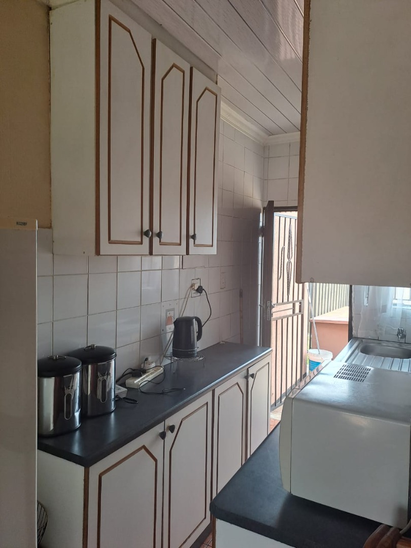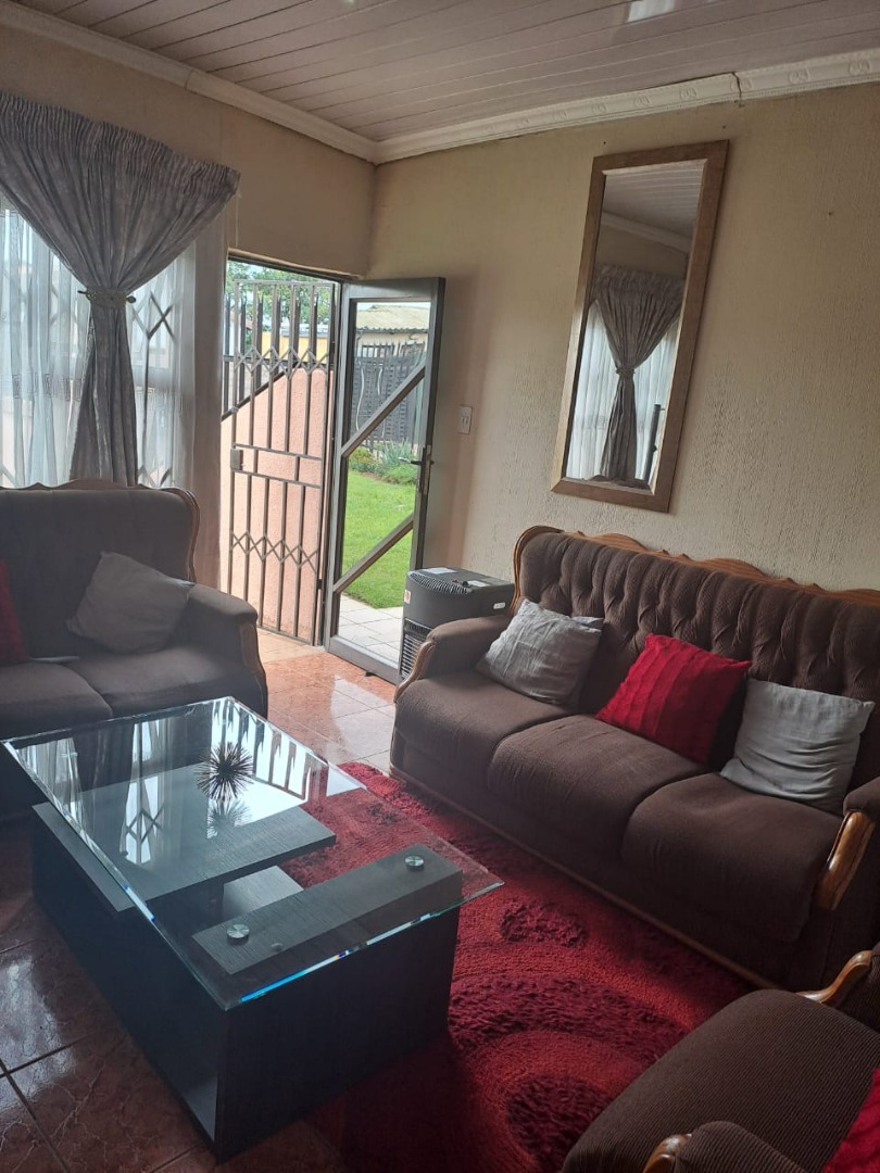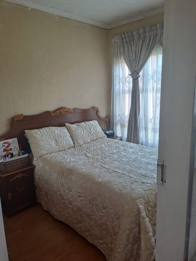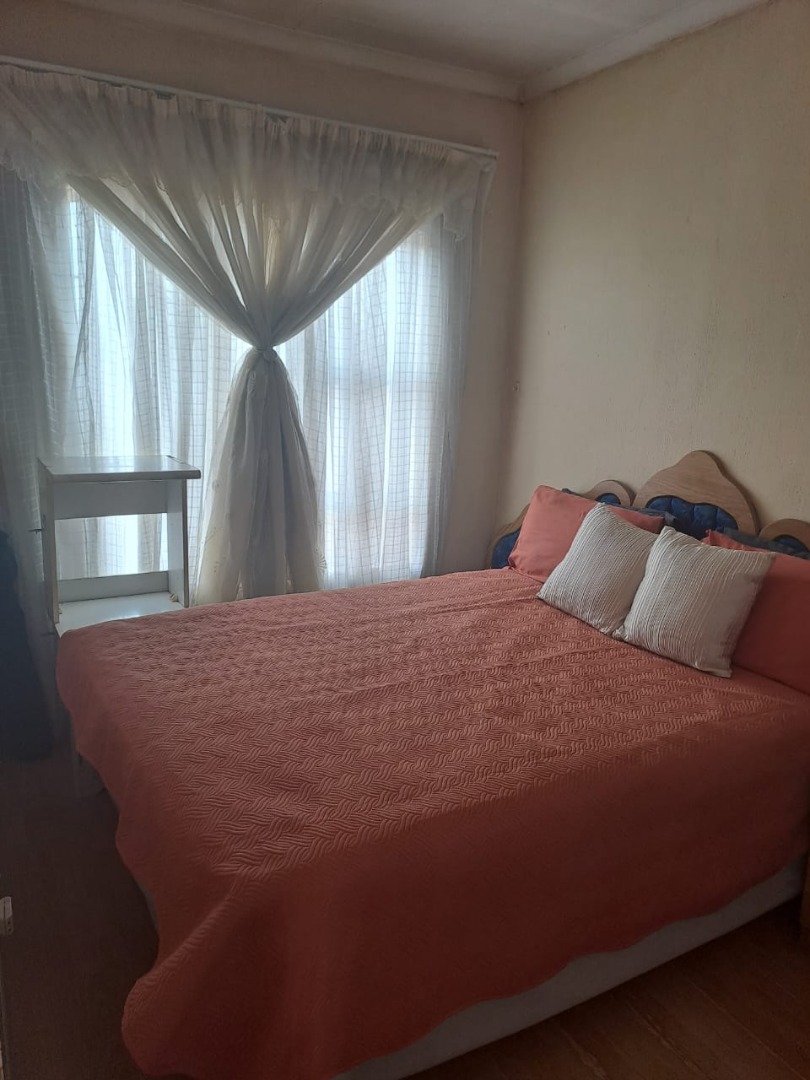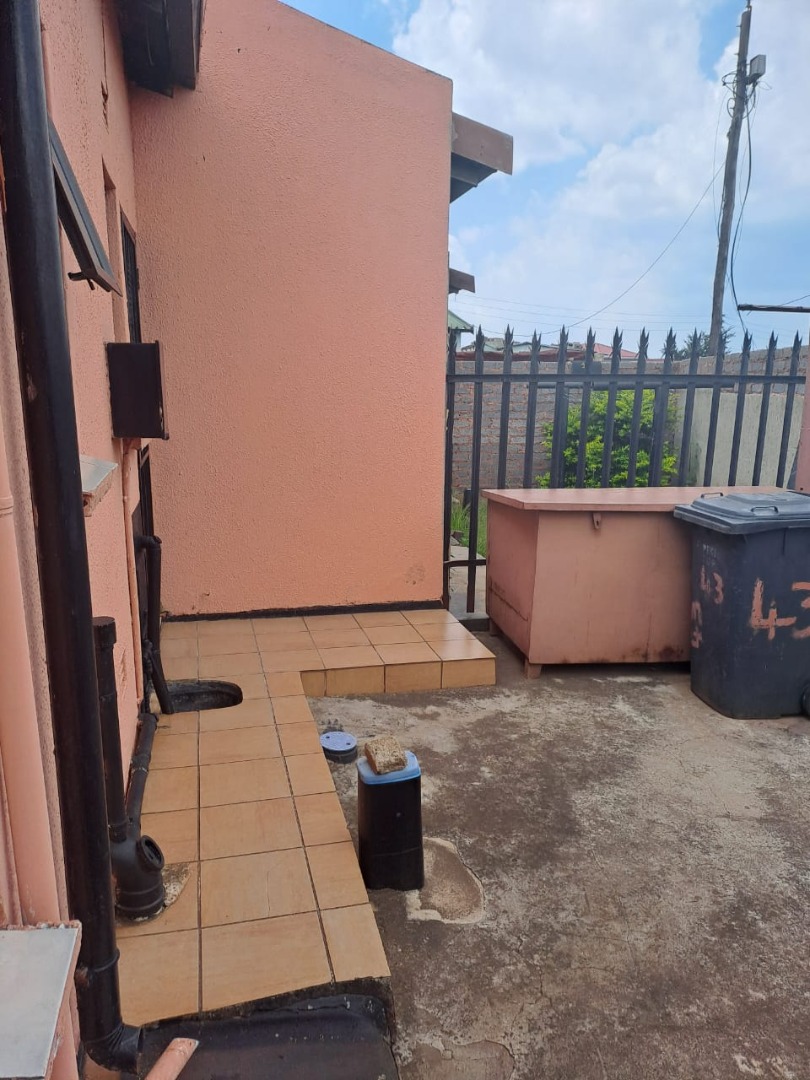This inviting 2-bedroom residential property in Protea Glen, Soweto, South Africa, offers a comfortable and secure living environment. Its welcoming kerb appeal features a freshly painted light peach exterior and a security gate at the main entrance.