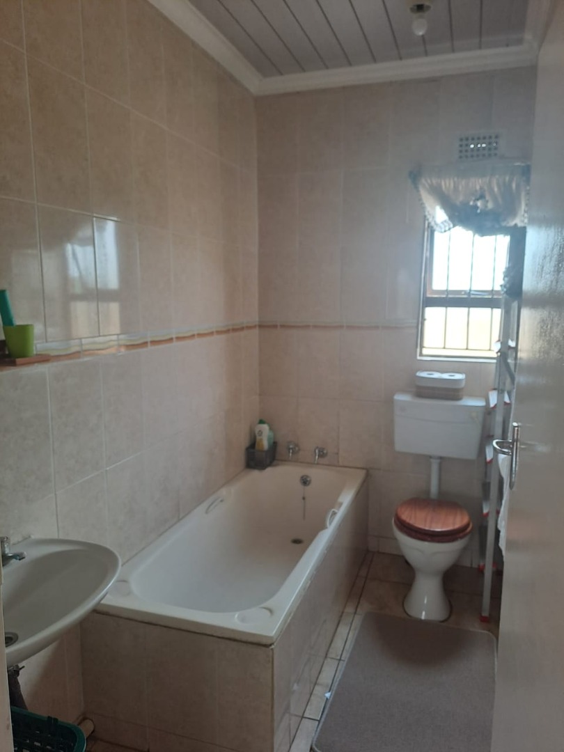 Outside, a tiled stoop area is ideal for enjoying the South African climate. The manageable 43.00 sqm erf features modern window frames with security bars and a functional gutter system. Two dedicated parking spaces enhance practicality. This Protea Glen home offers a secure and comfortable residential sale opportunity.