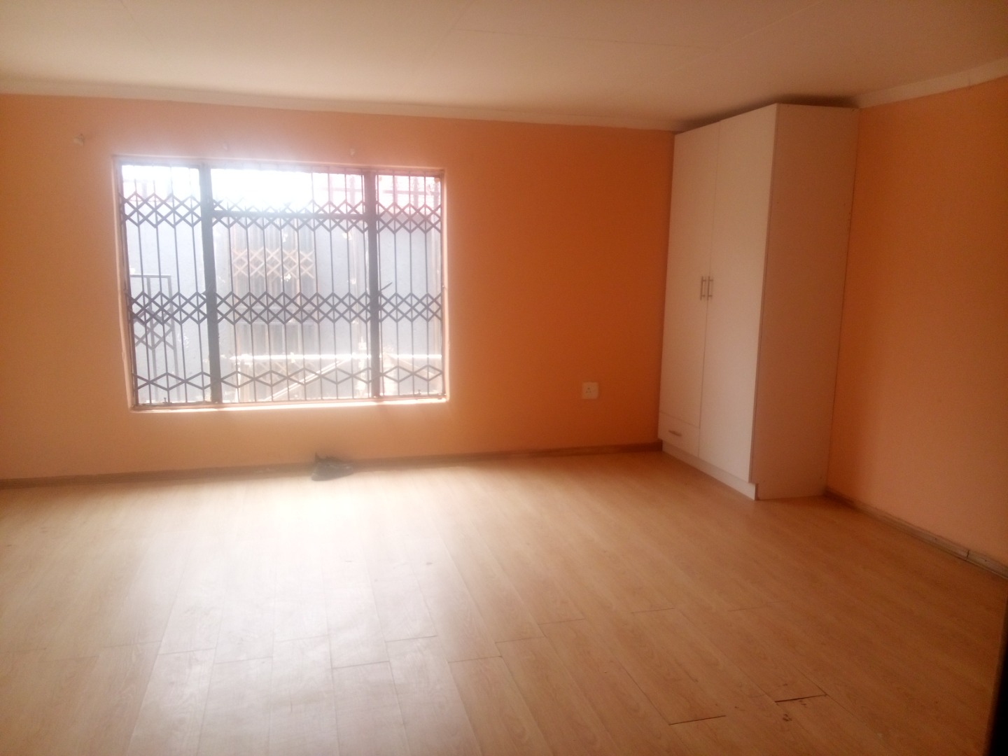 Discover comfortable and secure living in this modern 1-bedroom, 1-bathroom rental property located in a vibrant residential area of Soweto. This well-appointed unit offers a practical open-plan layout, ideal for a single professional or a couple seeking a convenient lock-up-and-go lifestyle. The interior boasts contemporary finishes, including durable laminate flooring that extends throughout the living spaces and bedroom. The compact yet efficient kitchenette features sleek white cabinets and a functional sink, perfect for daily meal preparation. Natural light floods the space through a large sliding glass door, which also provides access to an outdoor area, and an additional generous window in the bedroom. The bedroom is equipped with a built-in wardrobe, offering essential storage solutions. The bathroom is fully tiled for easy maintenance and includes a spacious corner bathtub, a wall-mounted sink, and a toilet, providing a complete and comfortable amenity. Security is a key feature of this property, with integrated security bars on the exterior entrance, a robust trellis gate on the sliding door, and security gates on the bedroom window, ensuring peace of mind for residents. Situated in Protea Glen, this well-established residential area in Soweto, South Africa, is known for its community atmosphere and accessibility to local amenities and transport routes, making it a desirable location for tenants. Key Features: * 1 Bedroom, 1 Bathroom * Modern Kitchenette * Laminate Flooring * Built-in Wardrobe * Corner Bathtub * Enhanced Security Features * Abundant Natural Light