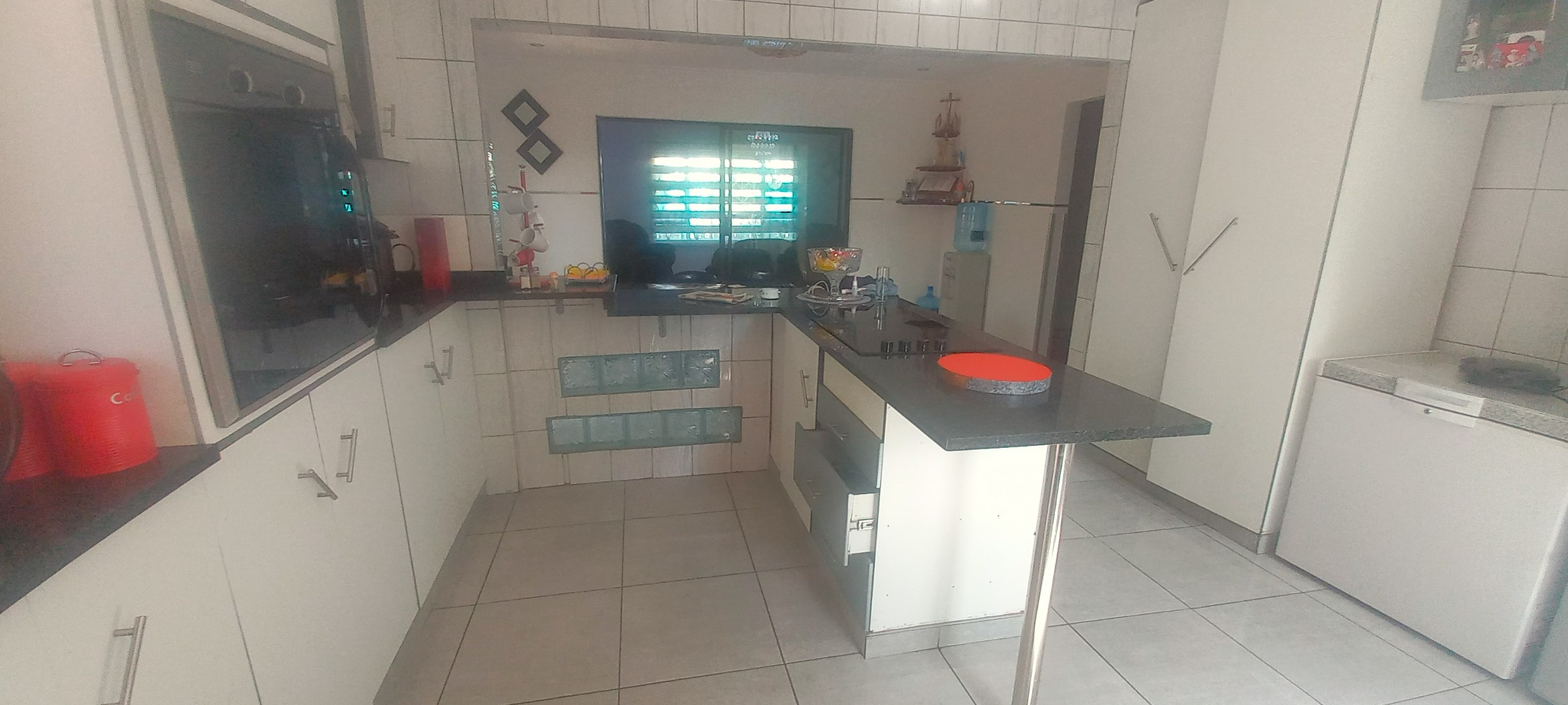six-seater breakfast nook, an island stove, double oven, and under-counter